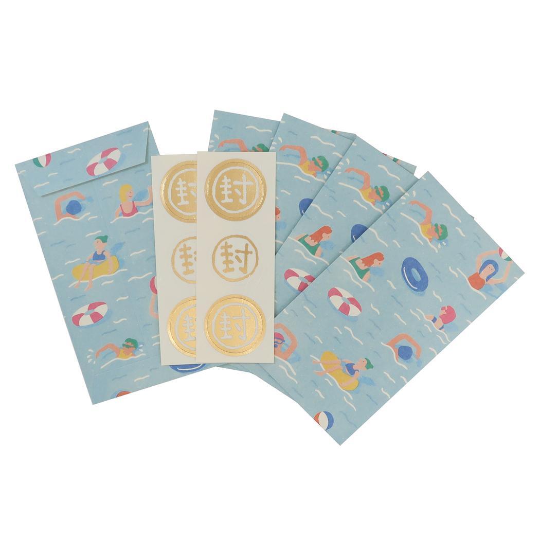 - 伊予和紙ふわり 和紙ポチ袋5枚セット ぽち袋 日本製 夏柄 海水浴