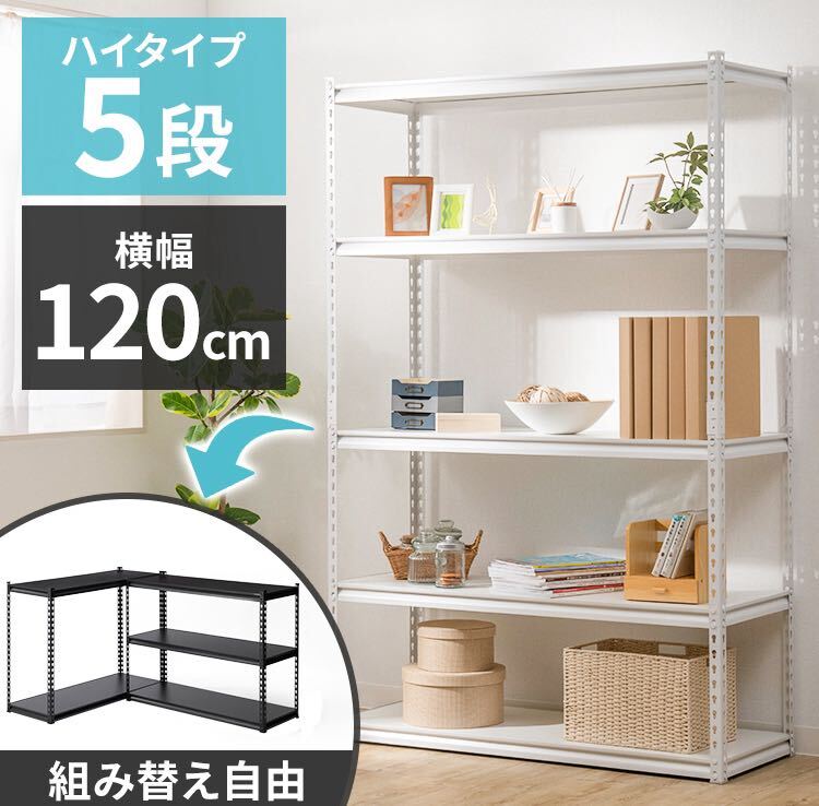 - スチールラック メタルラック 飾り棚 収納棚 収納ラック 横幅120cm 5段 ホワイト スチール棚