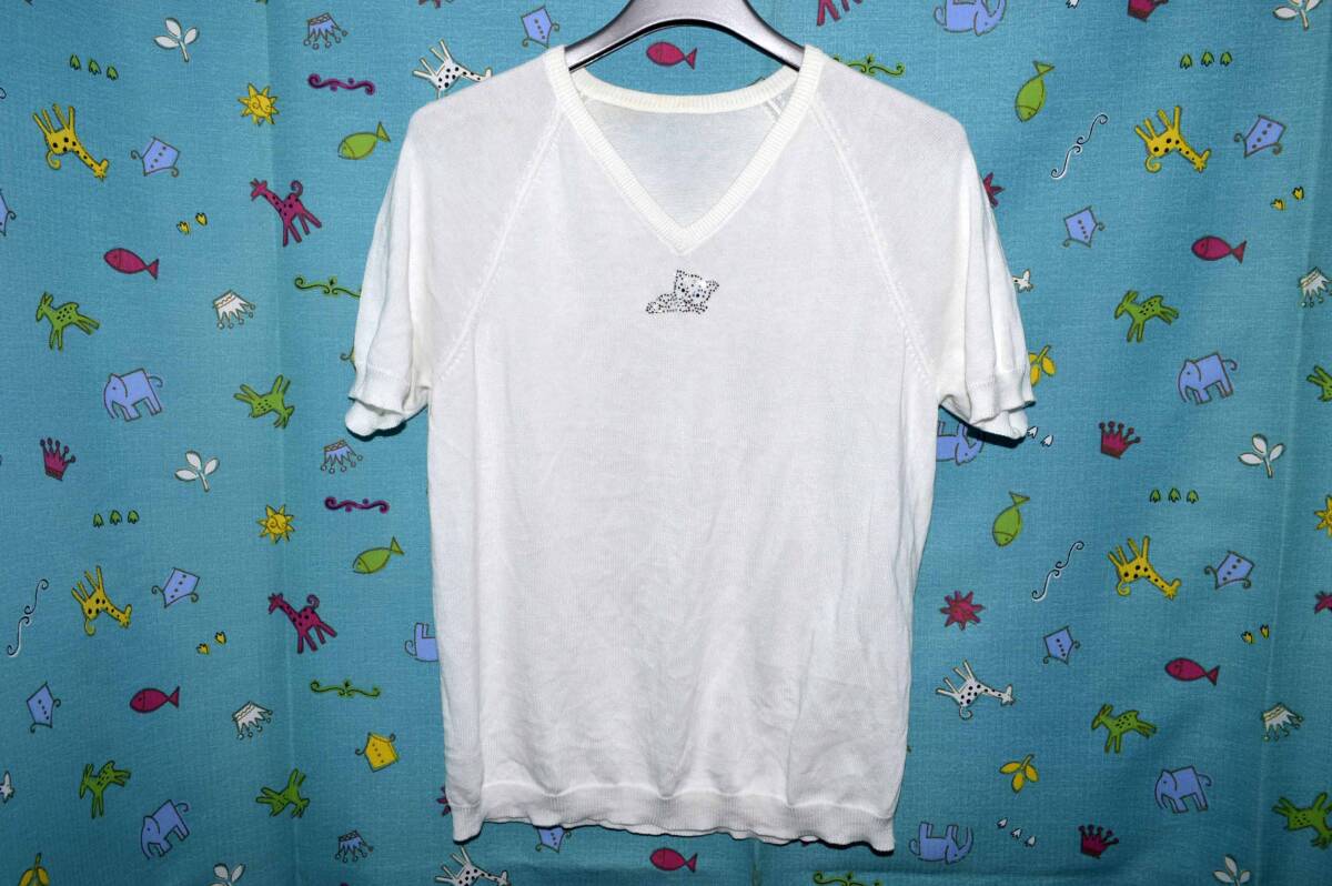 - GK ITALIA 伊太利屋・猫 ネコ ラインストーン 半袖ニット サイズ:9(中古美品)