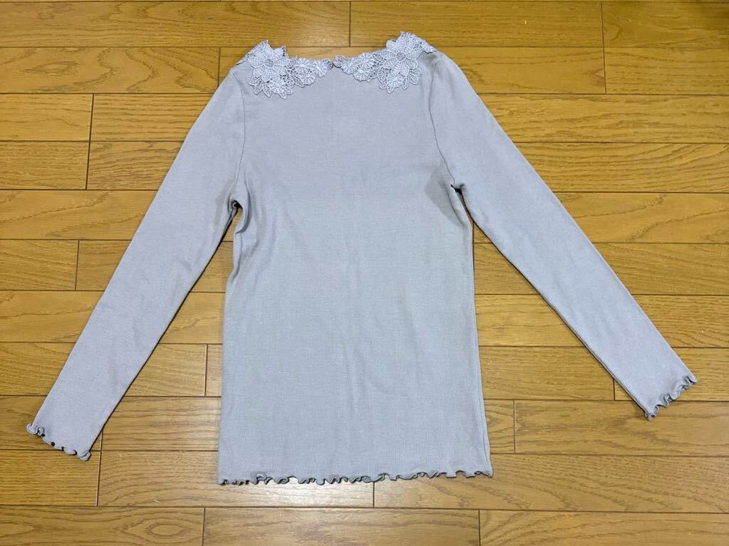- 送料無料■PUAL CE CIN ピュアルセシン ライトグレー 長袖 リブ カットソー レース ボートネック