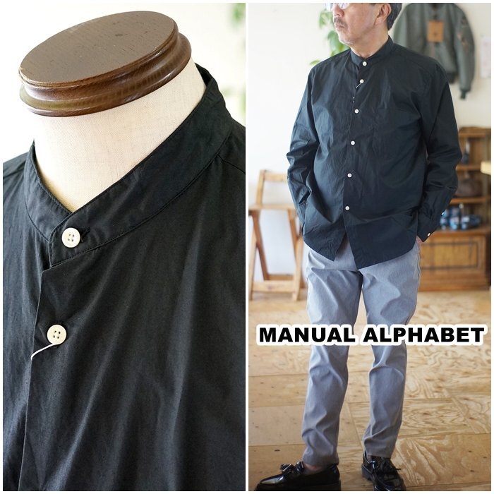 - MANUAL ALPHABET マニュアルアルファベット 長袖シャツ バンドカラーシャツ タイプライター MAS739 サイズL