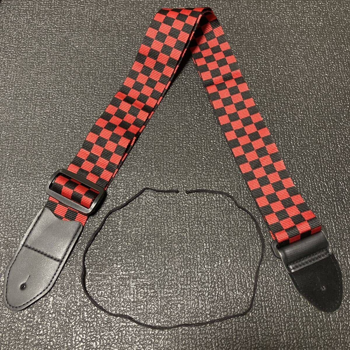 - ☆ 新品!! ギター ストラップ レッド × ブラック(チェック柄) ☆