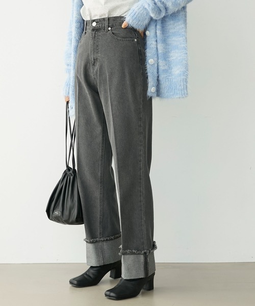 > 新品・未使用♪ Chaco closet≪チャコクローゼット≫ターンバックセンタープレスストレートデニムパンツ レディース♪Sサイズ♪♪
