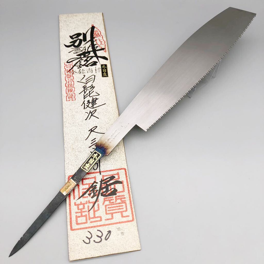 - [新品 未使用品] 別誂 正銘 白髭健次 尺三 穴引鋸 330mm 本目立 90 全長 600mm ノコギリ のこ 大工 安手 工具 銘入 木工 替刃 金物屋 在庫