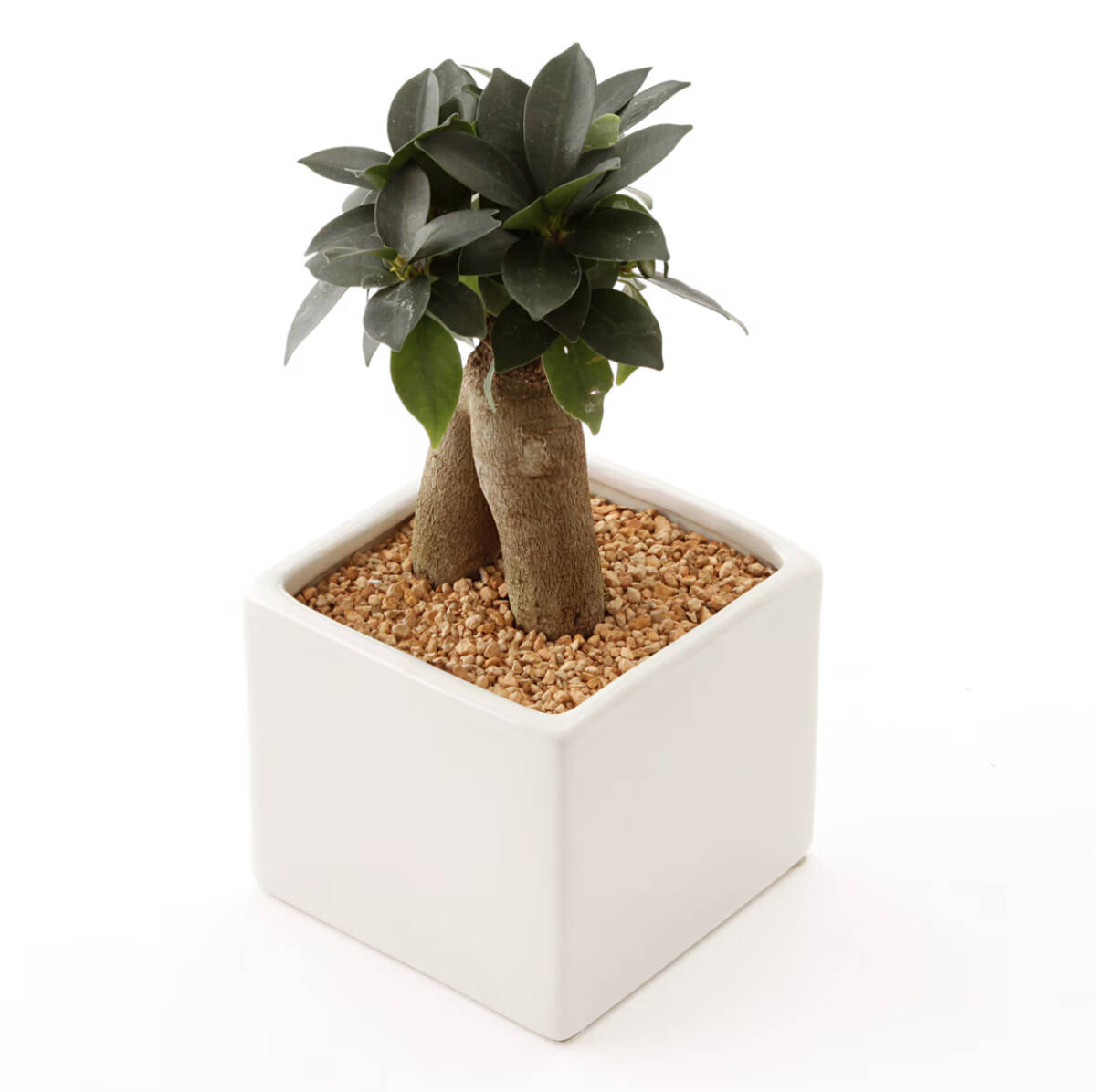 > ◆MUJI 無印良品 観葉植物 スクエア 陶器 角鉢 ガジュマルなし グリーン 白 インテリア 植木鉢 ポット 角型 匿名発送