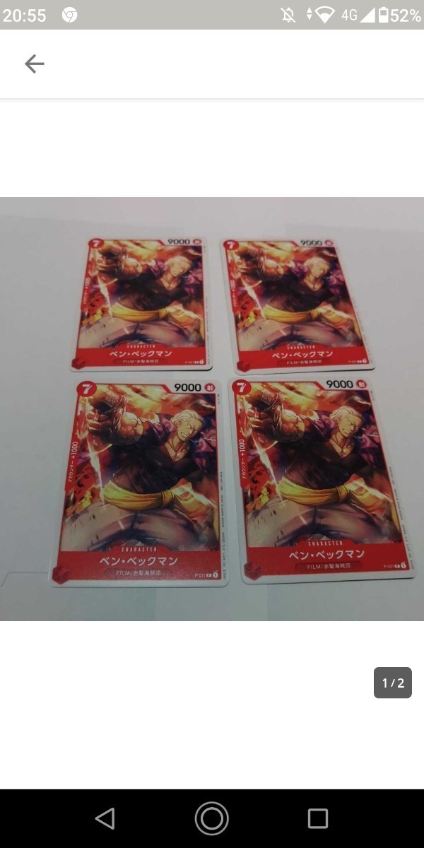 - ワンピースフィルムレッドの入場特典のベン・ベックマン×4枚