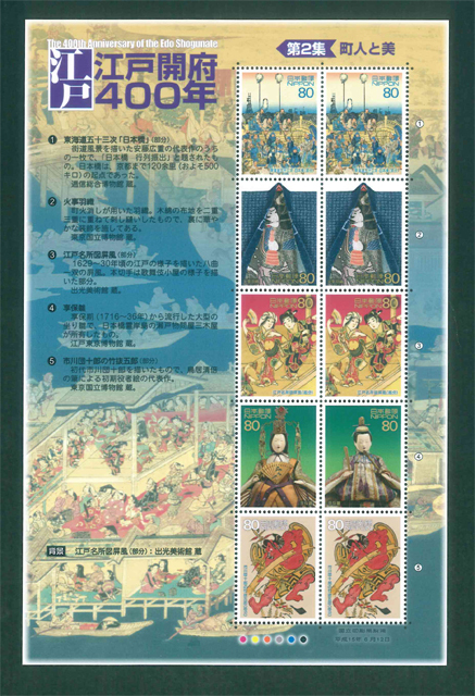 - 江戸開府400年 第2集 町民と美 記念切手 80円切手×10枚