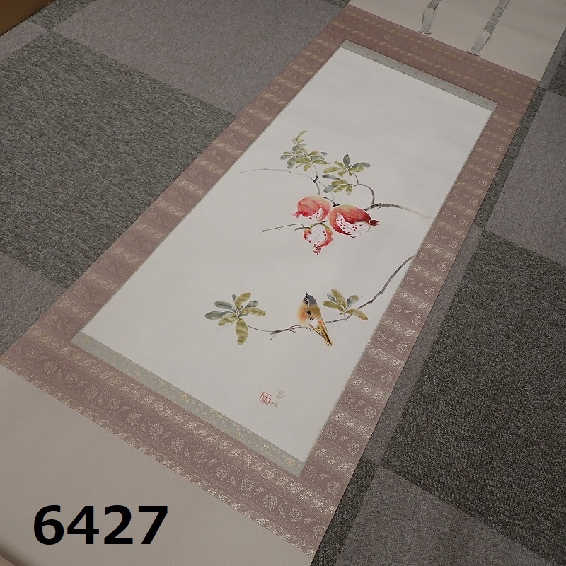 - 【模写】■FK-6427◆直筆 紙本 掛軸 太巻 沼田晏宏 拓榴 ザクロ 20240816