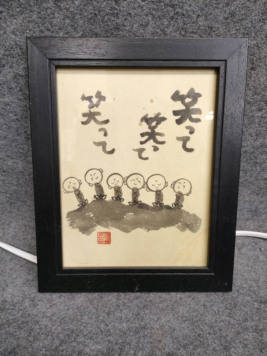 - 筆文字アート 書道作品 お地蔵様 額縁木製黒 笑って