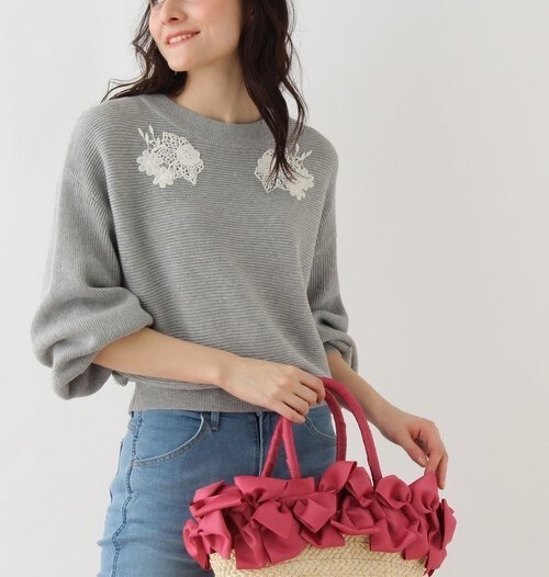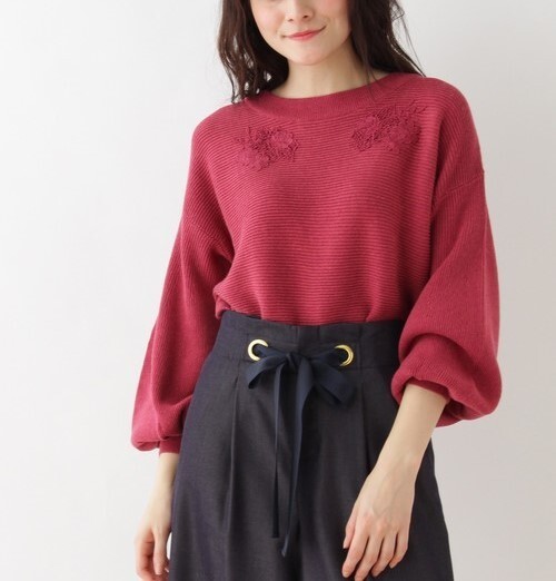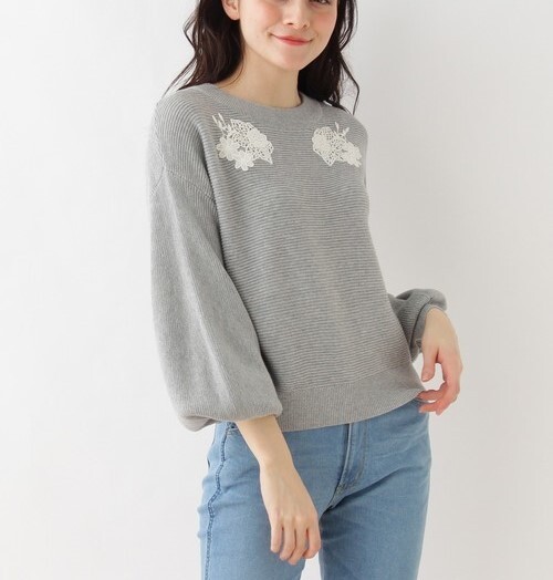 - 新品 Couture brooch ボリュームスリーブガーターニット グレー(012) 38(M) 定価4950円