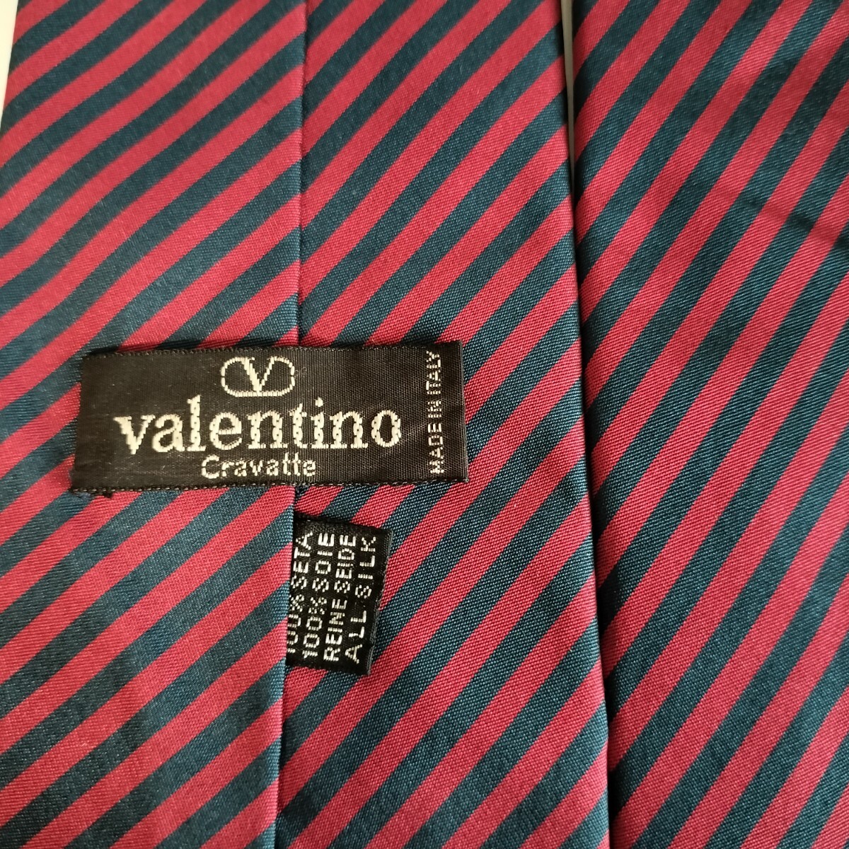 - VALENTINO(ヴァレンティノ)赤黒ストライプワンポイントロゴネクタイ