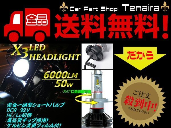 > バイク用 12v 24v兼用 H4 LEDヘッドライト X3型 発光色変更可能 Hi-Lo切替 1灯 6000LM 50w級 送料無料/7