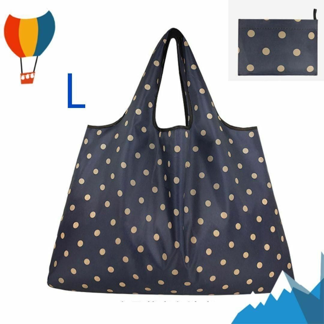 - ●新品●大容量 エコバッグ L<ネイビー水玉柄>コンパクトバッグ 買い物袋 防水 撥水 防汚加工 ナイロン 耐久性 おしゃれ プレゼント