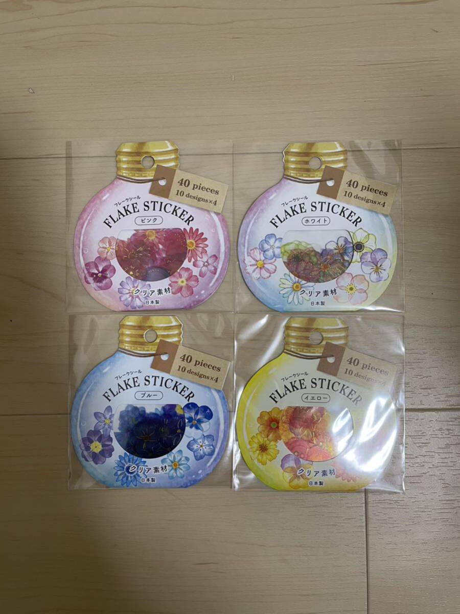 - 【匿名配送】セリア フレークシール クリア素材4点セット