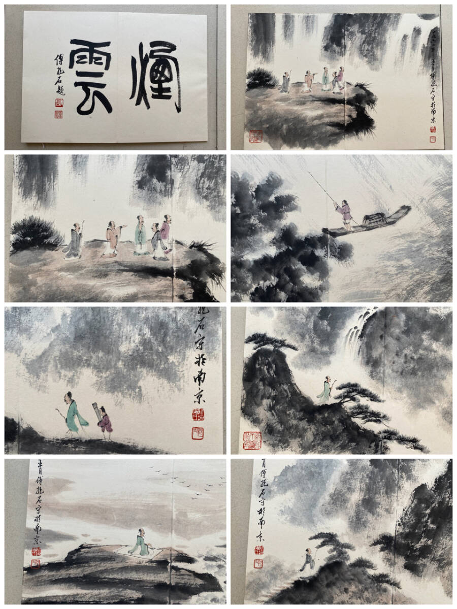 > 古美術 冊頁 中国・近現代 「傅抱石書」 紙本 【人物山水図 八開】 書道 真筆逸品 肉筆保証 唐物 古画 LT-2408182