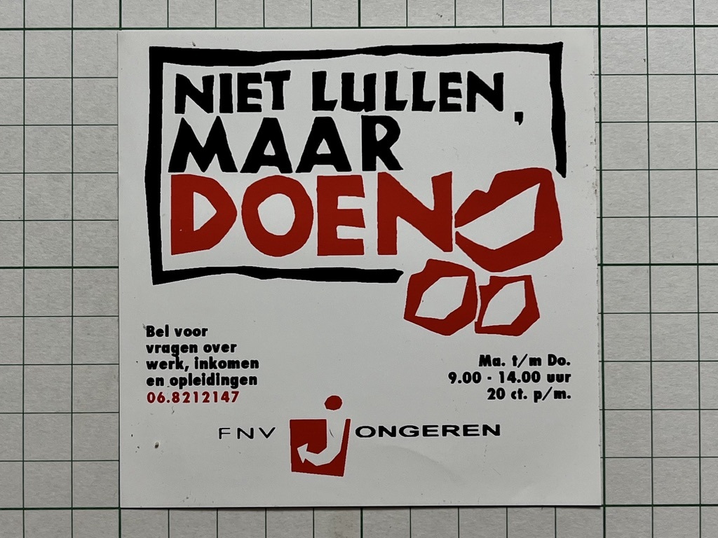 > Niet Lullen, Maar Doen オランダ 黙って行動しろ 古いステッカー 労働組合 FNV ビンテージ 海外 +Jb