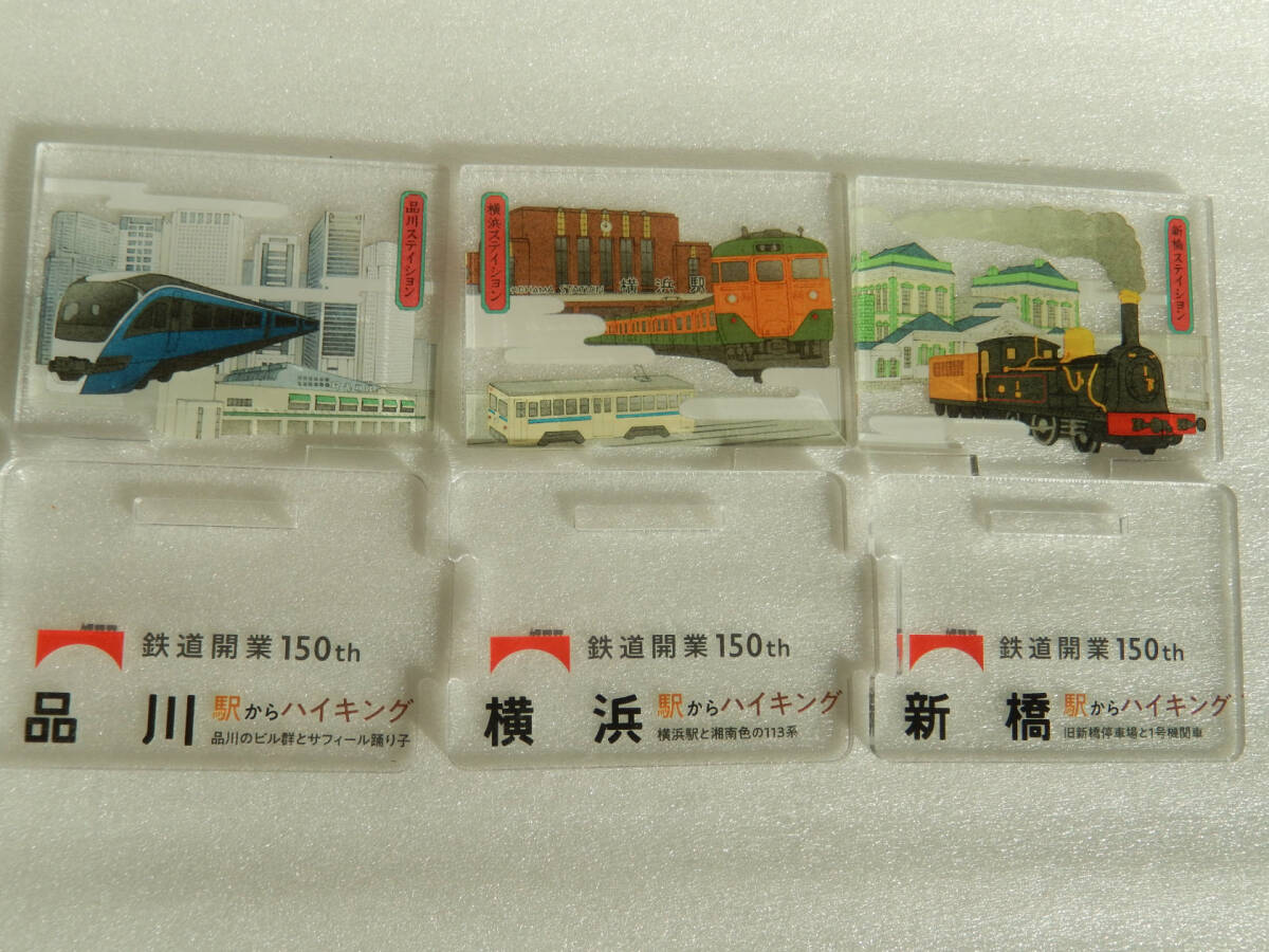 - JR東日本 《 鉄道開業150周年記念 新橋駅・品川駅・横浜駅 アクリルスタンド 3種 》☆★☆★☆ 鉄道 グッズ 電車 車両 国鉄 トレイン