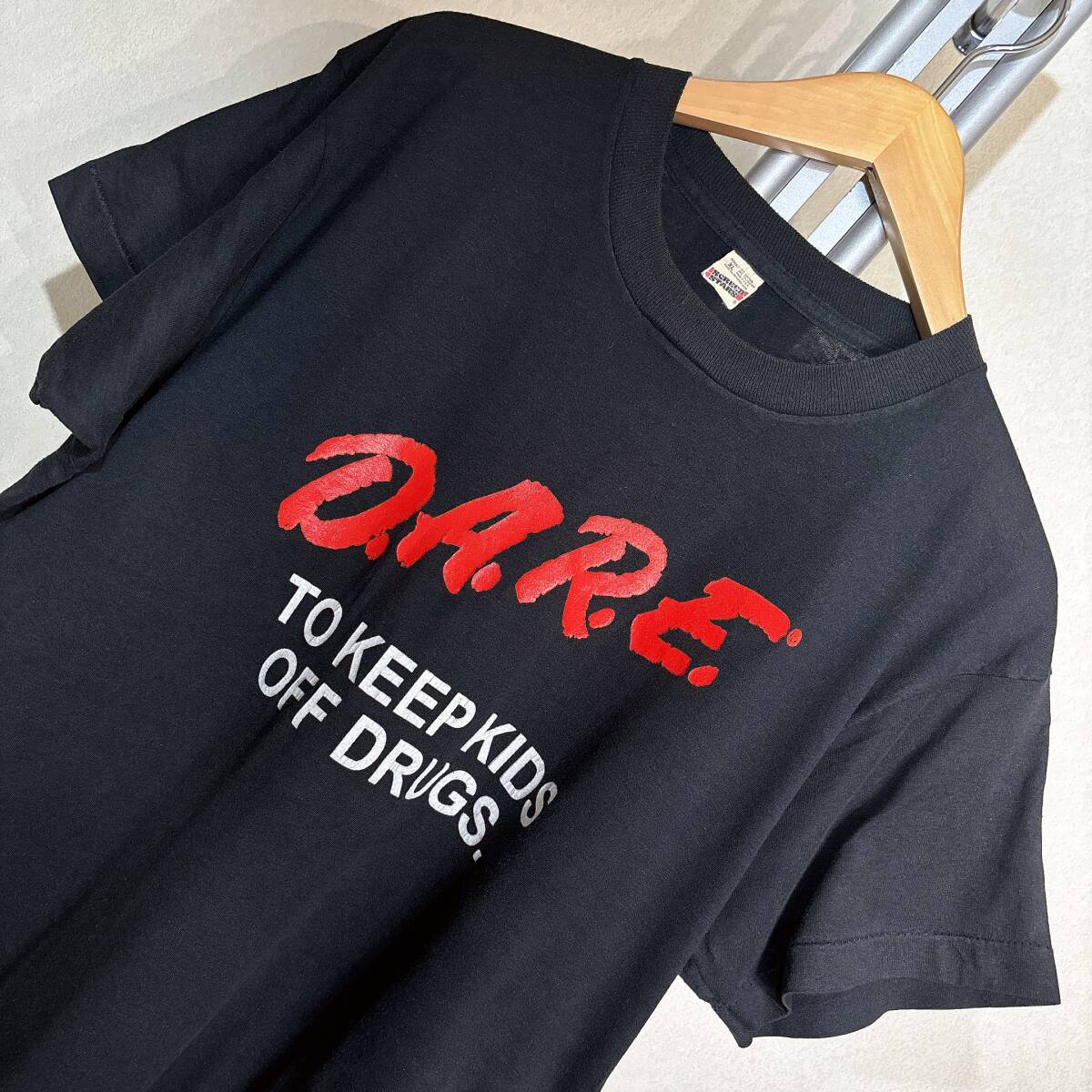 > X131■USA製古着★80s/D.A.R.E./SCREEN STARS★黒/シングルステッチ★Tシャツ■US XL