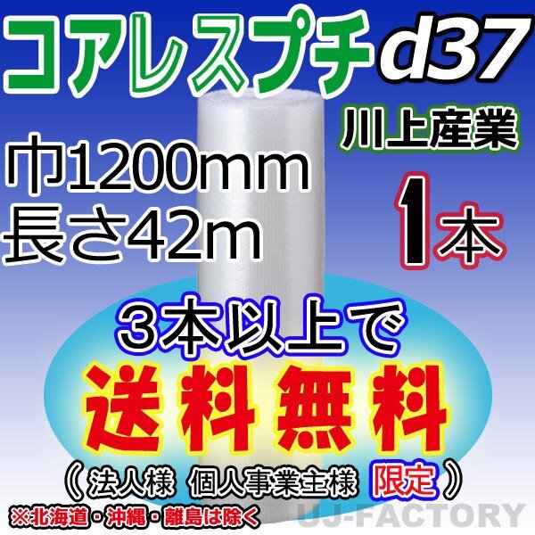 > 【3本以上で送料無料/法人様・個人事業主様】★川上産業/コアレスプチ(d37) 1200mm×42m ×1本★エアーパッキン/ロール/シート・梱包材