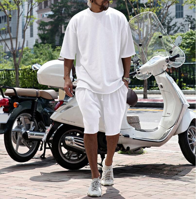 - 8色 人気推薦 / 上下セットアップ メンズジャージスウェット無地 半袖Tシャツハーフパンツスポーツウェアトレーナールームウェア/ホワイト