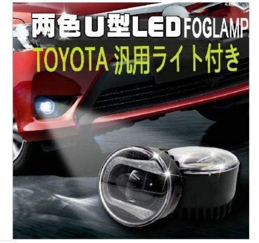 > U型ディライト付き LEDフォグランプユニット トヨタ汎用ユニット白/青 左右セット ライト 本体 後付け 交換 (ブルー, U型ディライト)