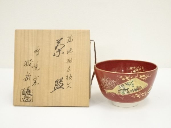 - ys7097912; 京焼 橋本城岳造 茜地羽子板文茶碗(共箱)【道】