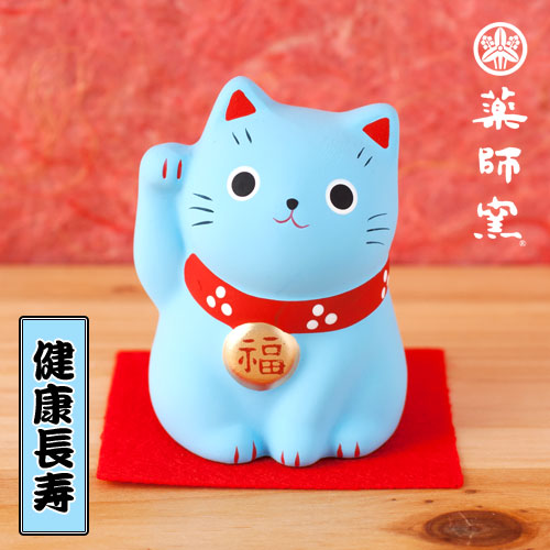 - 招き猫 青色 健康長寿 ブルー 水色 かわいい 雑貨 縁起物 贈答品 ノベルティ 記念品 粗品 ねこ ネコ ねこちゃん ブルー 飾り 置物 小さい