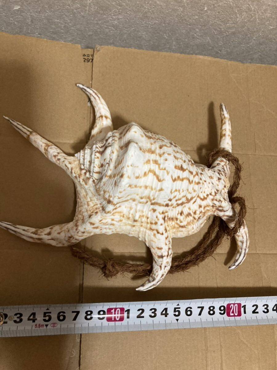 - YK-3132 水字貝 紐付き 約470g スイジガイ 約20cm×約14cm 貝殻 インテリア オブジェ 魔除け 沖縄 お土産 飾り 水槽