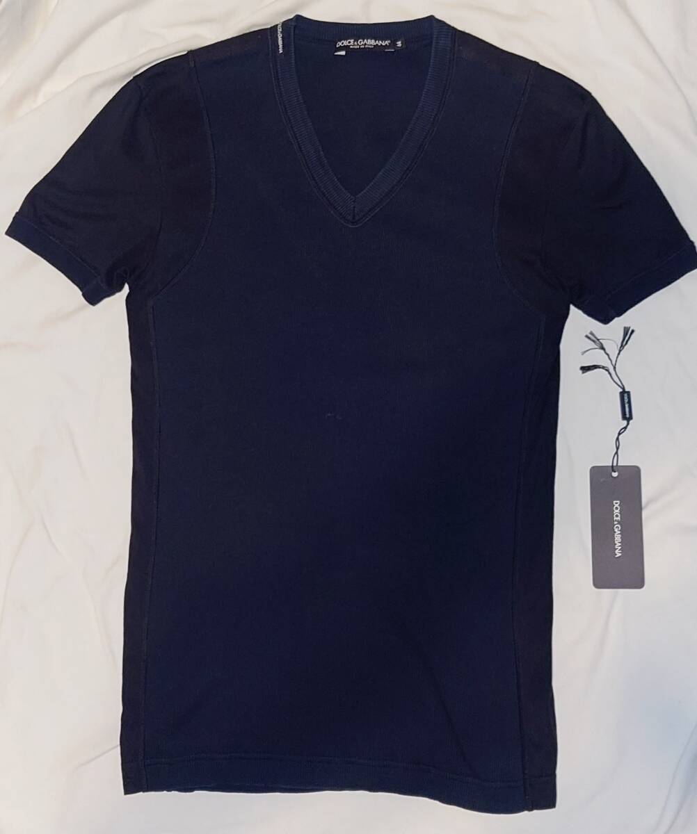 - ドルチェ&ガッバーナ リブ切り替え Vネック半袖Tシャツ 44 黒 タグ付き DOLCE&GABBANA