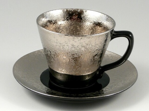 - SA有田焼! ☆プラチナ黒釉掛分コーヒー碗皿☆ 新品 紅茶 ミルク ラテ カプチーノ エスプレッソ 茶器 ギフト