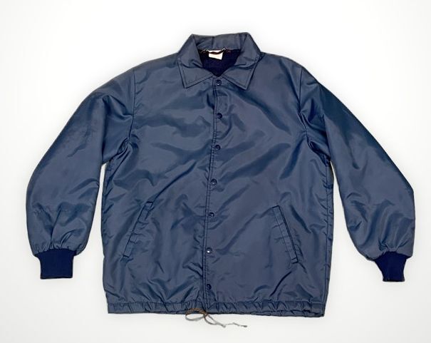 > 80's 米国製 HOWE ATHLETIC APPAREL ナイロン コーチジャケット UAW LOCAL 1037 袖リブ 裏地あり ネイビー L [la-1050]
