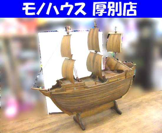 現状品 大型 ワインラック ワインキャビネット ARIZONA ACTION BY MIRCO 帆船 全長 約222cm 中古 オブジェ 厚別店