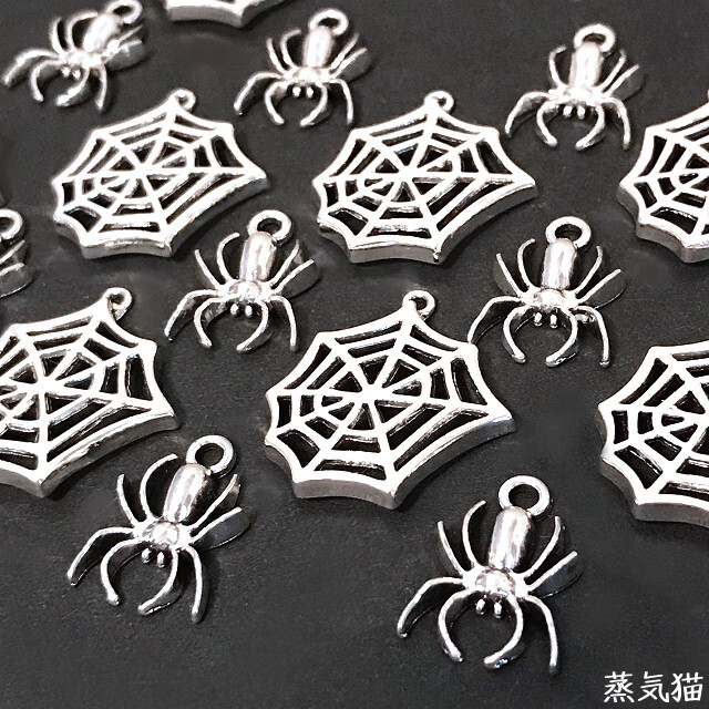 - c6220 クモの巣チャームパーツ2種セット銀古美20個【蜘蛛ハロウィン ピアス シルバー ハンドメイド用アクセサリーパーツ素材】蒸気猫パーツ