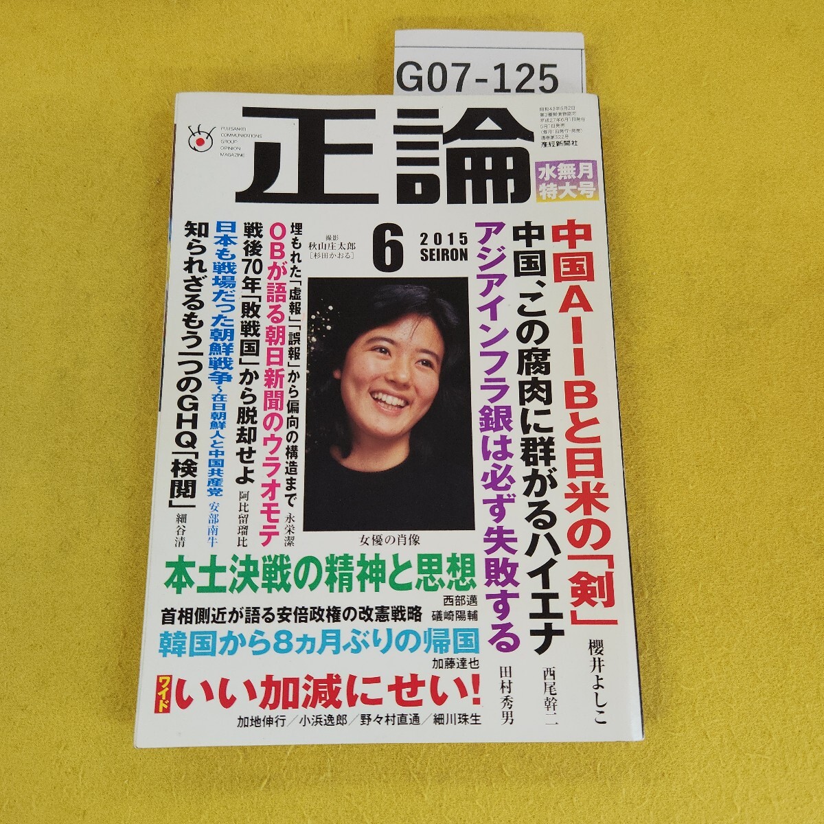 - G07-125 正論 2015年6月号 中国AIIBと日米の剣/中国この腐肉に群がるハイエナ他 産経新聞社 書き込み折れ多数あり。