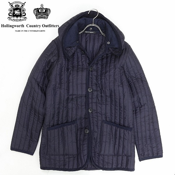 > ◆Hollingworth Country outfitters ホリングワース カントリーアウトフィッターズ 中綿 フーデッド パイピング ジャケット 紺 ネイビー 38