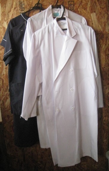 - 中古 紺色ナース服2着+ドクターコート2着 まとめて4着 ワンピース ショート丈 白衣 イベント、小道具、舞台、撮影/16N24.8-47