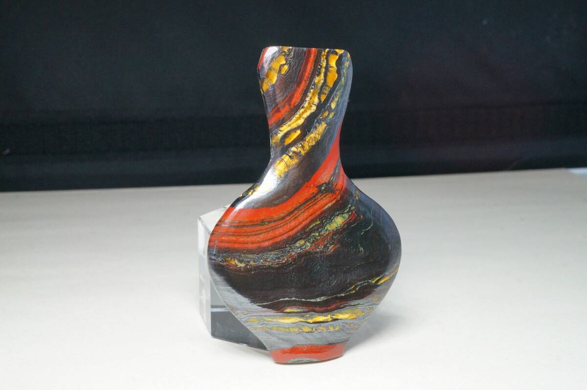 - 希少!35年前の未使用在庫!藍色が綺麗な上質ブラジル産アイアンタイガー彫刻「花瓶」13.3g