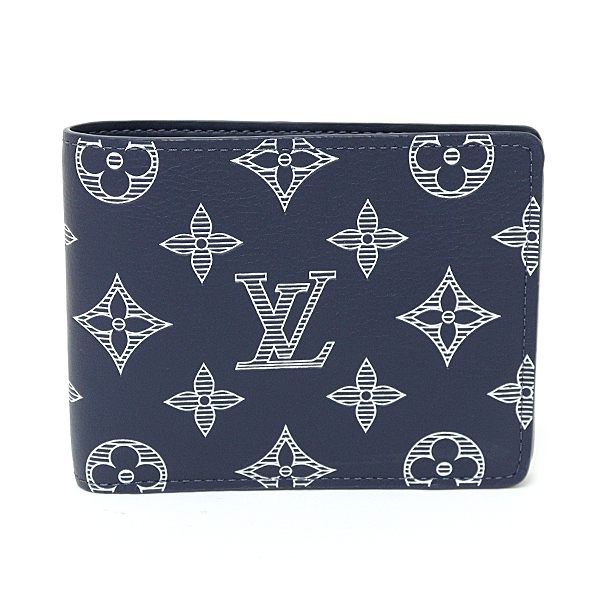 > ルイ ヴィトン LOUIS VUITTON ポルトフォイユ・ミュルティプル 二つ折り財布 モノグラム・シャドウ M83379 ブルーマリーヌ 【中古】S