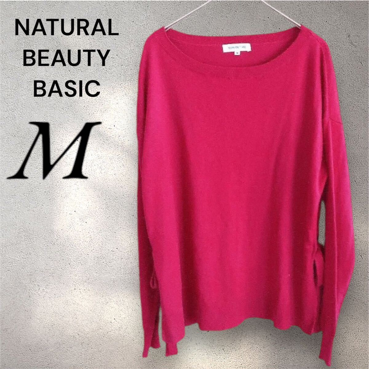 - 訳あり ナチュラルビューティーベーシック ニット長袖 ピンク Mサイズ カットソー セーター トップス 無地