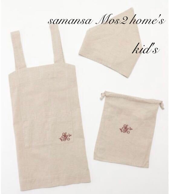 - F【新品】samansa Mos2 home's 綿麻sh刺繍キッズエプロン3点セット サマンサモスモス エプロン 子供 おしゃれ ベージュ お手伝い 女の子