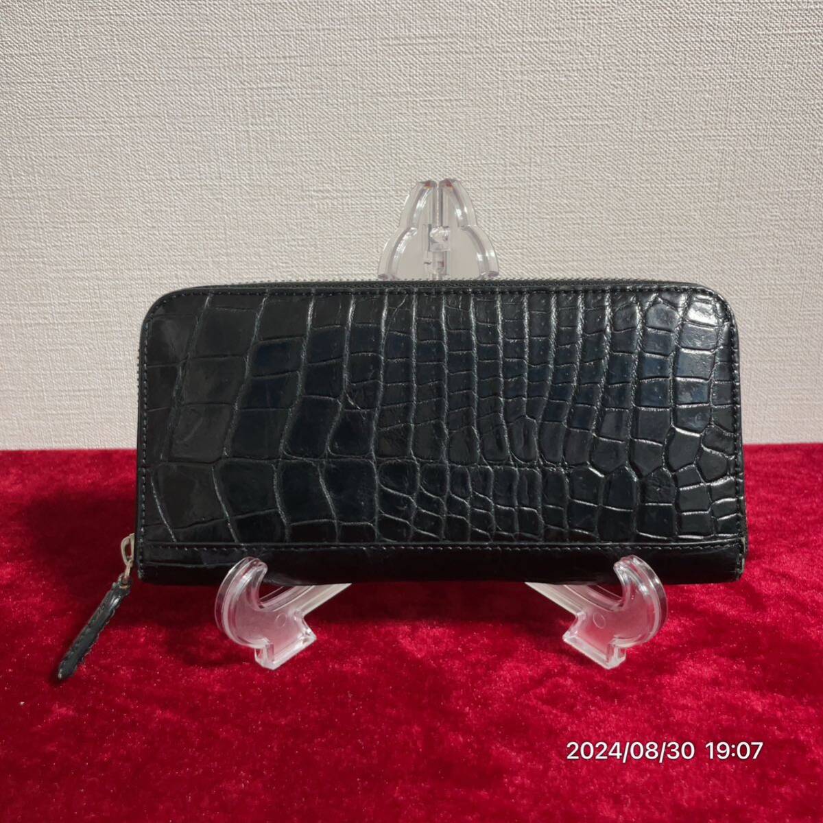 - RODANIA ロダニア マットクロコ ブラックカラー エキゾチックレザー 革 ラウンドファスナー 長財布