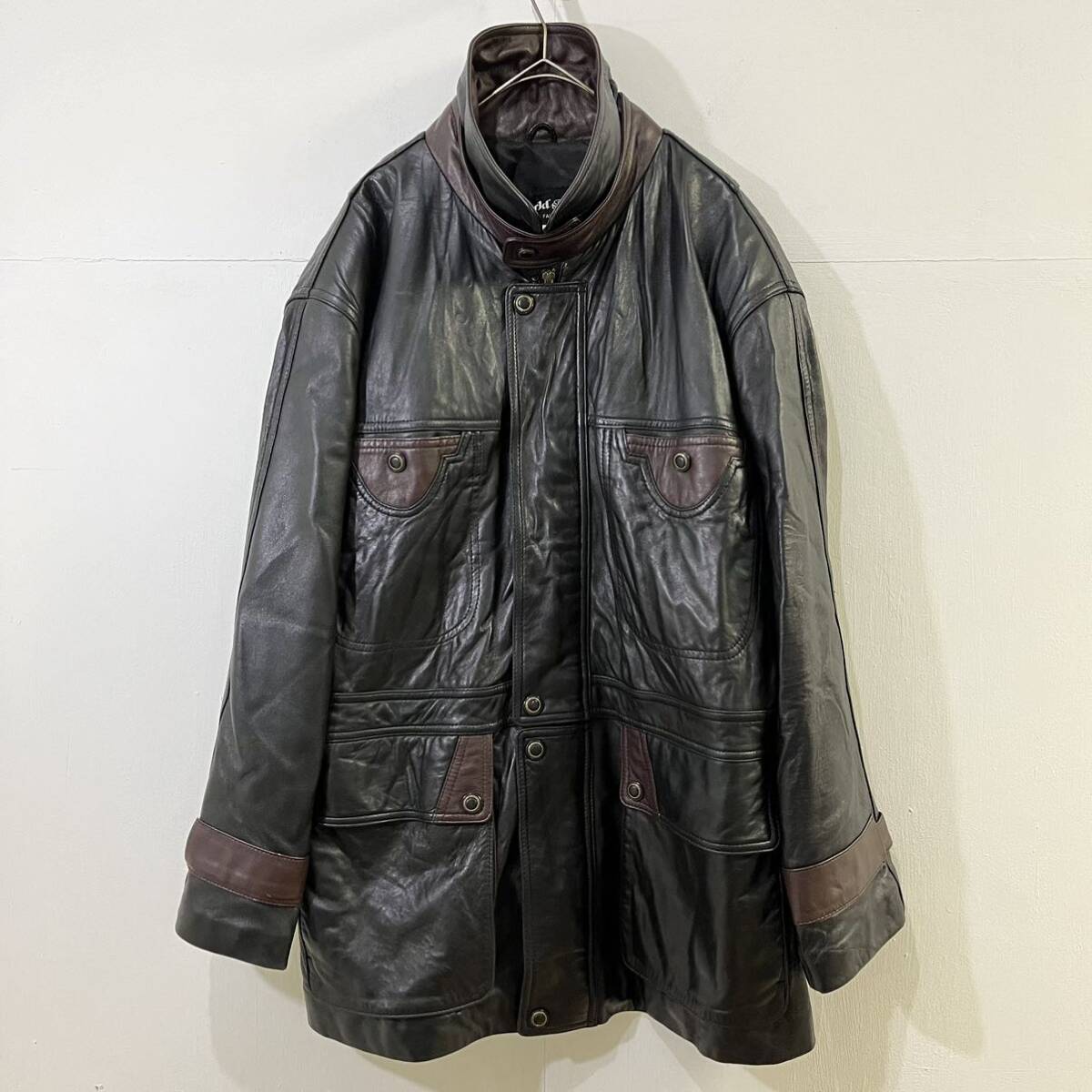 - VINTAGE world star 極上 レザーコート レザージャケット 本革コート カーコート 上質 バイカラーブラック ブラウン【送料一律/同梱可能】L