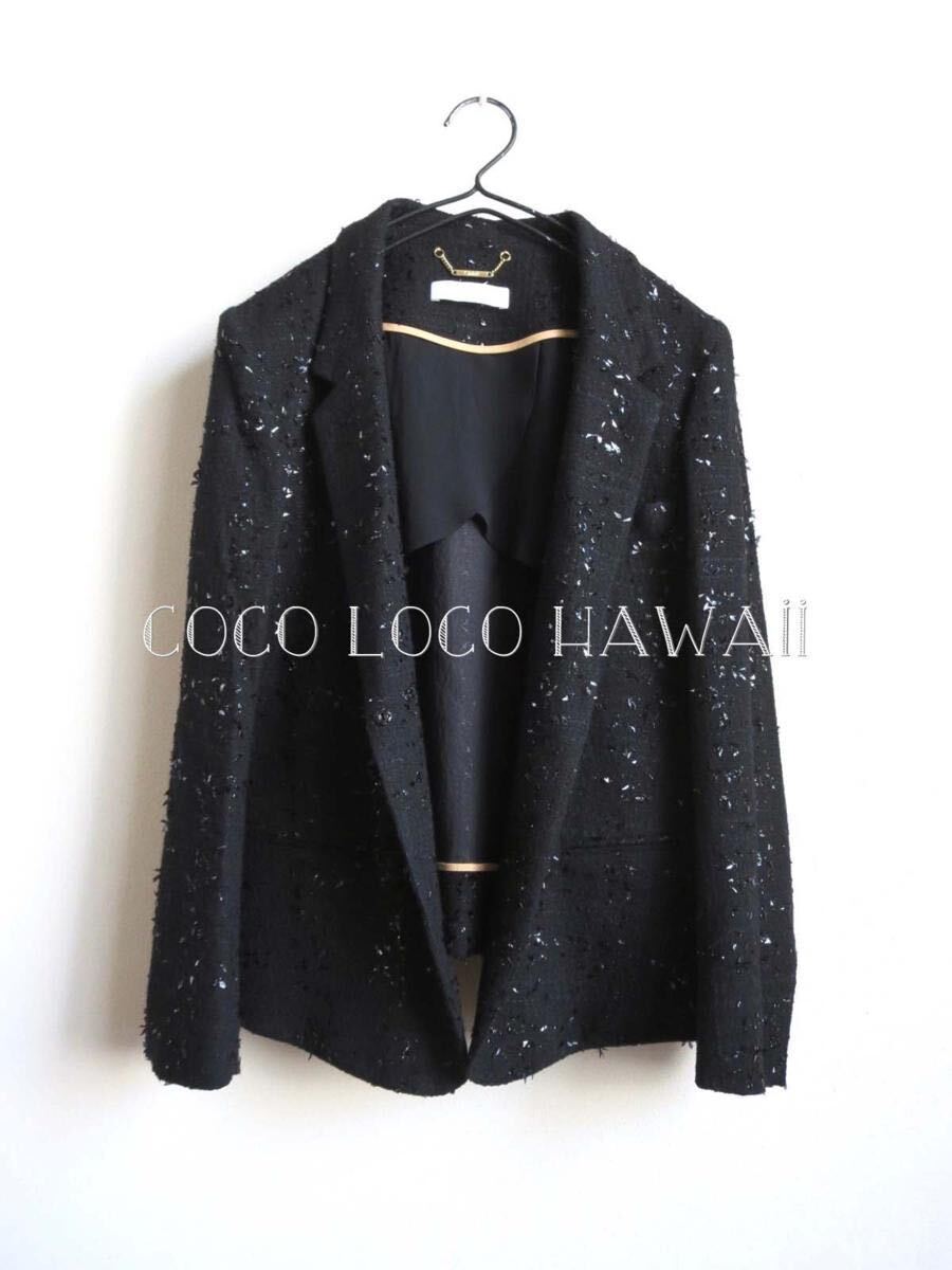 - 【美品】Chloe12万★ グロッシーマテリアルボンディング ツイードファブリック 美シルエット テーラードジャケット ブラック ★34サイズ