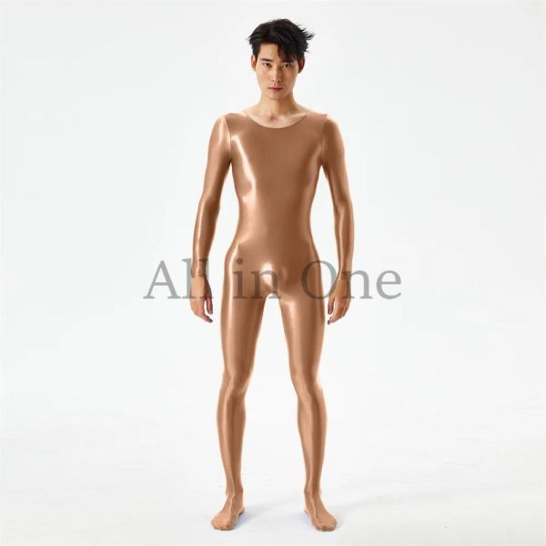 > 91-36-38 メンズ ツヤツヤ 光沢 全身 ジャンプスーツ 【ブラウン,Mサイズ】男性 セクシー コスプレ エロ 仮装 イベント コスチューム .2