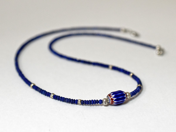 - ●わくわく とんぼ玉★ANTIQUEシェブロン小玉ヘッドとラピスラズリビーズのネックレス【2409】【M22006】