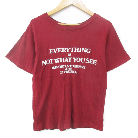 - マウジー MOUSSY Tシャツ カットソー 半袖 ラウンドネック ロゴプリント F 赤 白 レッド ホワイト /FF39 レディース