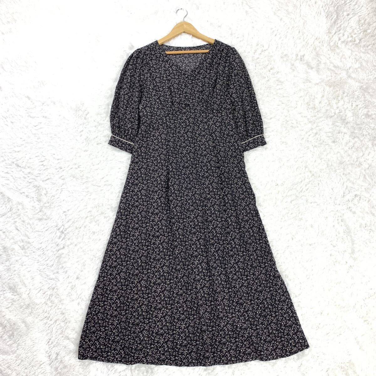 - アースミュージックアンドエコロジー 半袖ワンピース ロングワンピース ブラック 黒 花柄 ポリエステル F YA7925
