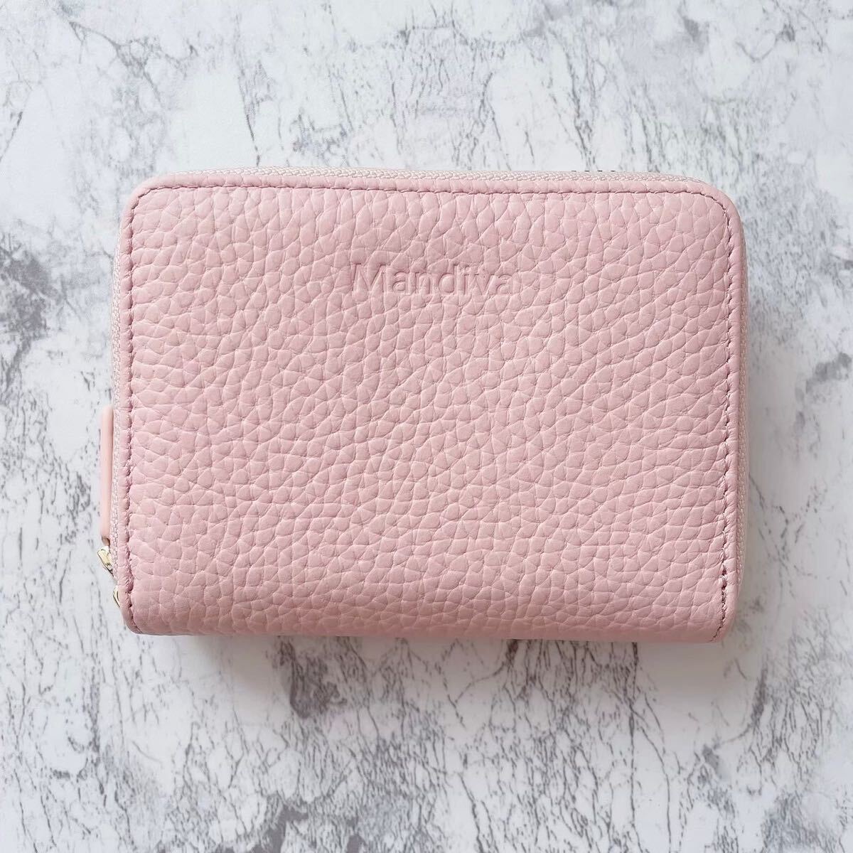 - 本革 ミニ財布 レディース 折りたたみ財布 コインケース カードケース ピンク②