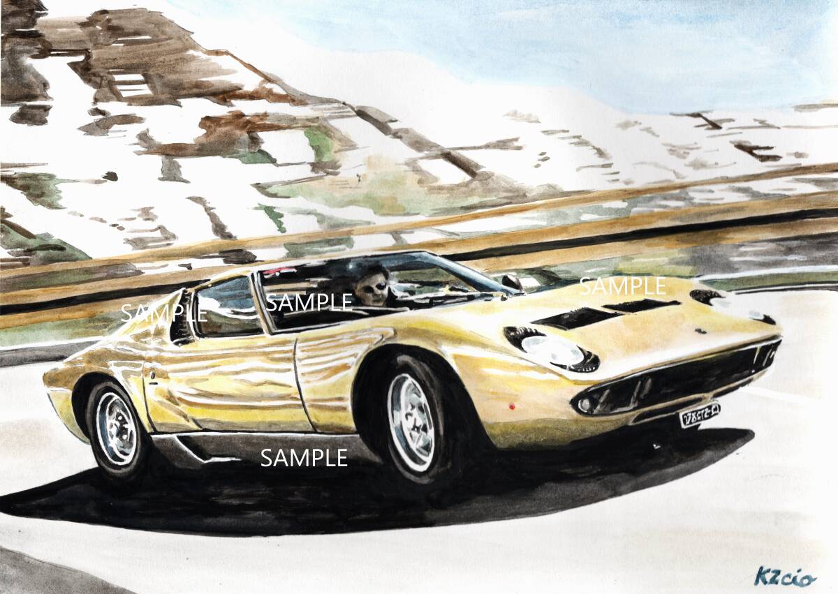 - A4プリントです。ランボルギーニミウラ 水彩画 旧車イラスト