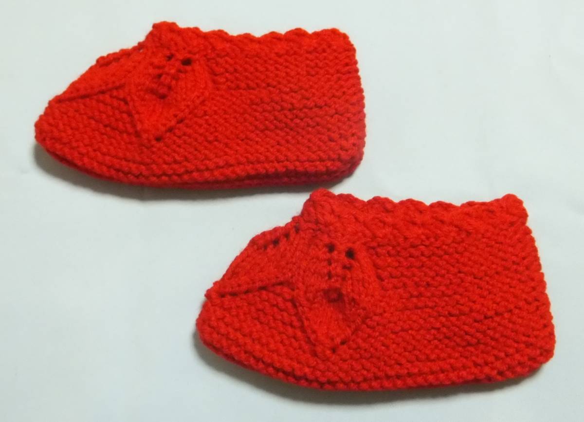 - 【編10】手編みルームシューズ(赤)ハンドメイド 毛糸 ルームソックス 靴下カバー フットカバー 部屋履き 室内履き 足元あったか♪